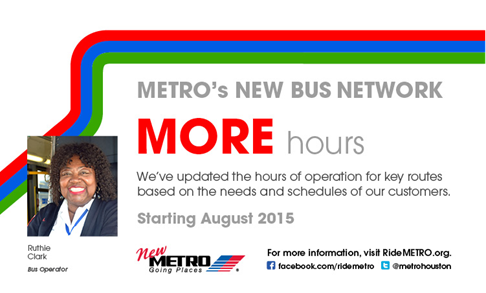 METRO is excited about its “NEW BUS NETWORK” starting August 2015. Check out some of the service improvements we are looking forward to providing to our customers.