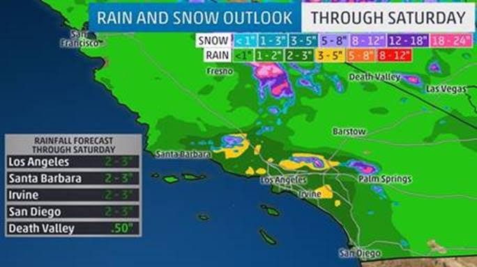 In southern California, millions of people are under flash flood watches as a storm moves in with snow, strong winds and heavy rain bringing the threat of flooding and mudslides.