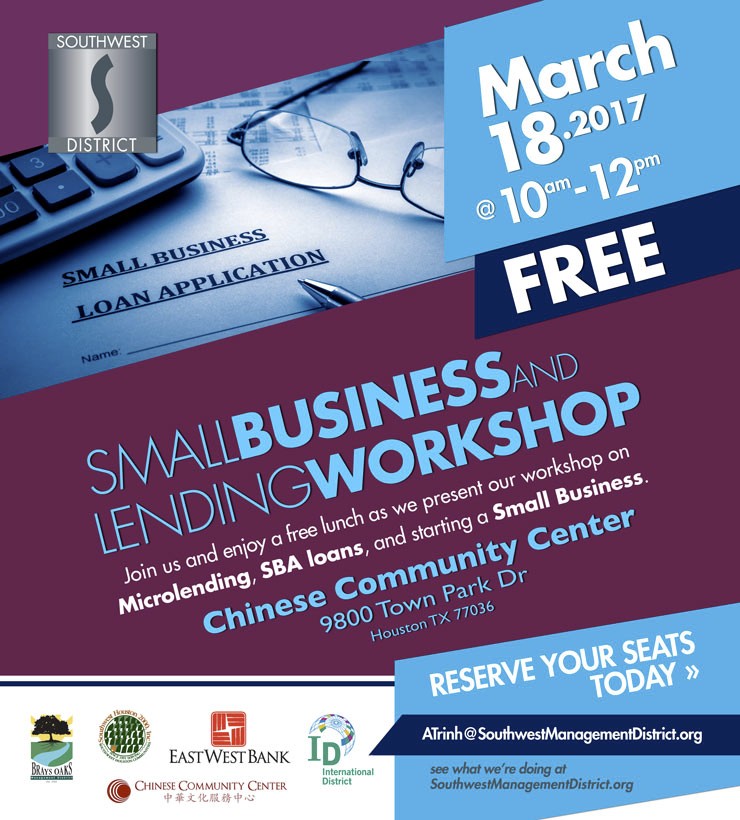The Southwest Management District, Southwest Houston 2000, inc., East West Bank and Brays Oaks Management District would like to invite you to our Small Business and Lending Workshop