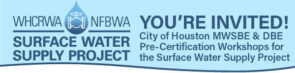 Please join the West Harris County Regional Water Authority for City of Houston MWSBE and DBE Pre-Certification Workshops for the Surface Water Supply Project