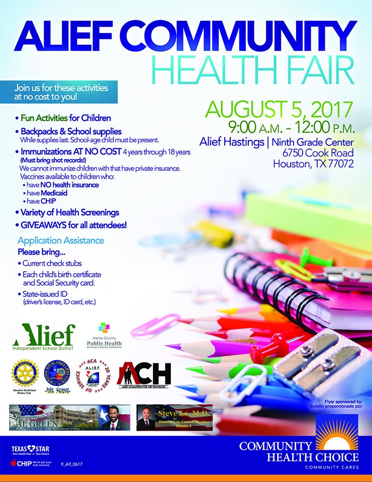 Alief Community Health Fair, Aug. 5