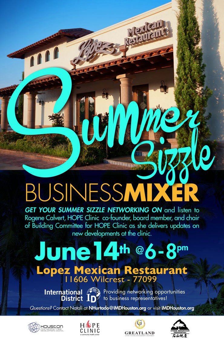 Get your summer sizzle networking on and listen to Rogene Calvert, HOPE Clinic co-founder, board member, and chair of Building Committee for HOPE Clinic as she delivers updates on new developments at the clinic.