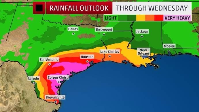 The center of Tropical Storm Harvey remains in the Gulf of Mexico and is moving north-northwest near 10mph. A track toward the northwest at a faster speed is anticipated over the next 48 hours with Harvey expected to approach the Texas coast on Friday. Harvey is likely to become a Category 2 hurricane and is forecast to produce total rain accumulations of 10-15 inches with isolated maximum amounts of 25 inches over the Texas coast through next Wednesday. In the days following landfall, heavy rain, flooding and strong winds are expected across parts of Texas and Louisiana.