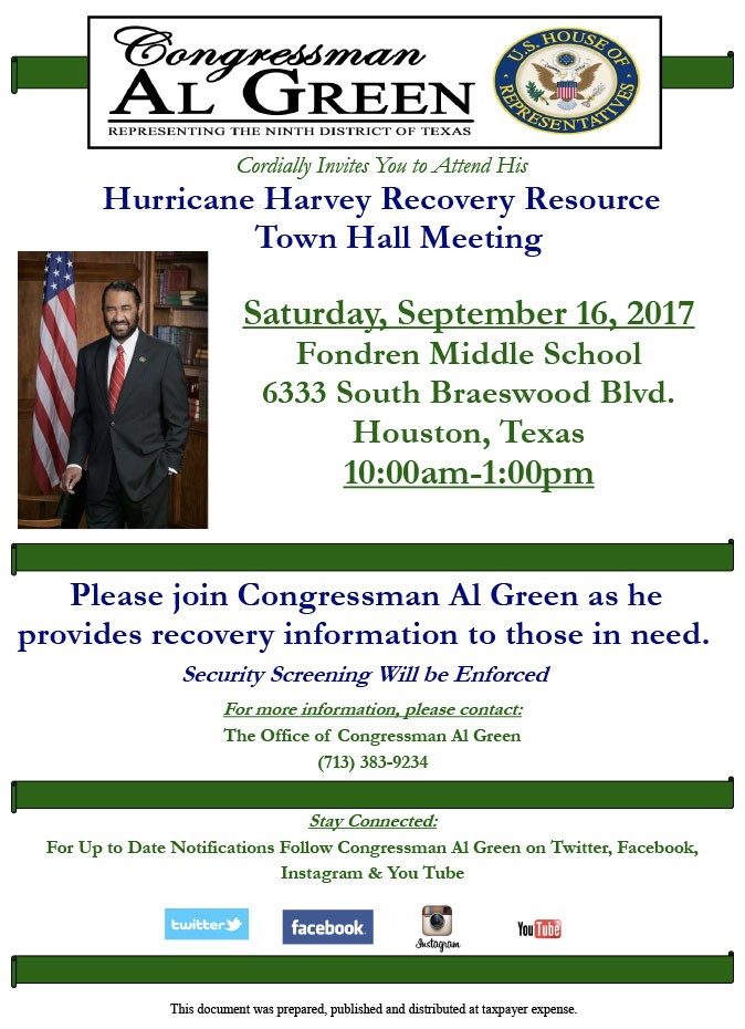 Congressman Al Green: Hurricane Harvey Recovery Resource Town Hall Meeting