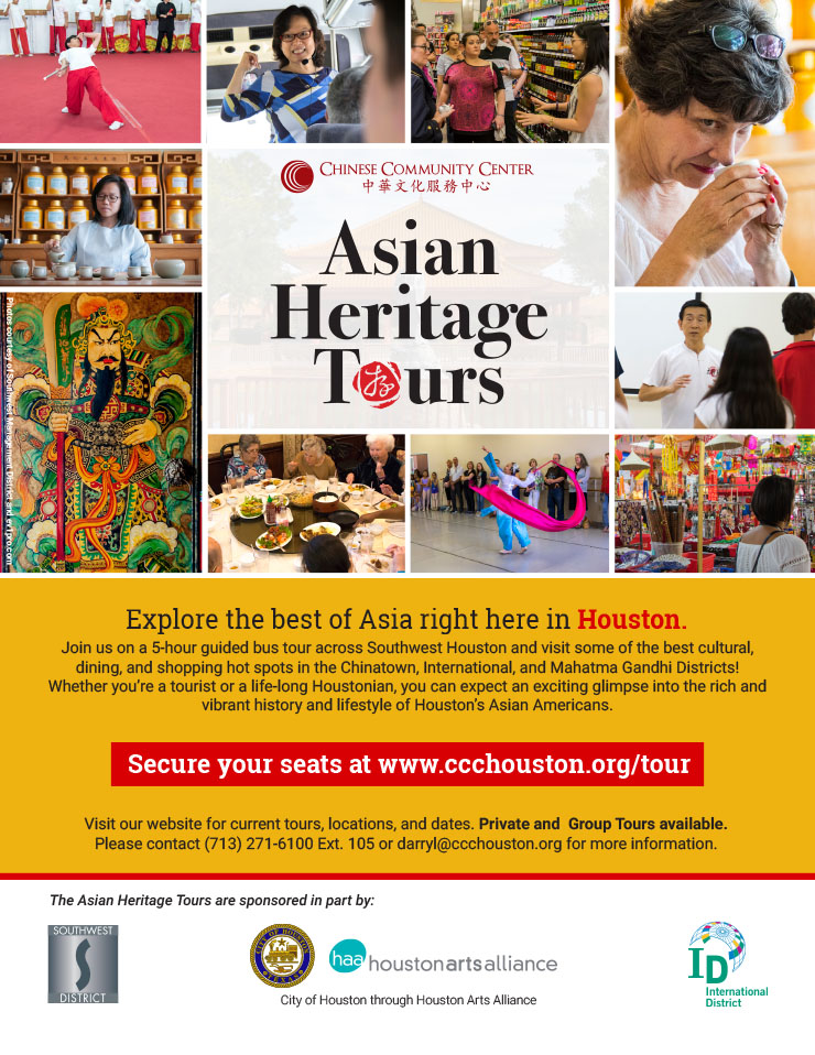 Join us for a 4.5 hour bus tour across Southwest Houston and learn about the exciting history of Southwest Houston! This tour takes you around the Chinatown and International Districts to explore and experience popular dining and shopping hotspots in the area, such as the Shaolin Temple Cultural Center, Mulan Asian Market, Hong Kong City Mall, and Ten Yen Tea & Herbs, and Chung Mei Temple. Click here for a full list of tour stops that have been featured on our tours.