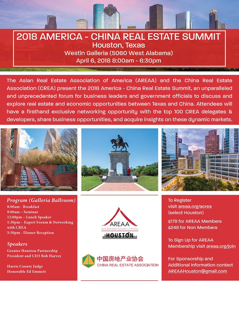 America-China Real Estate Summit in Houston – Westin Galleria – Apr. 6