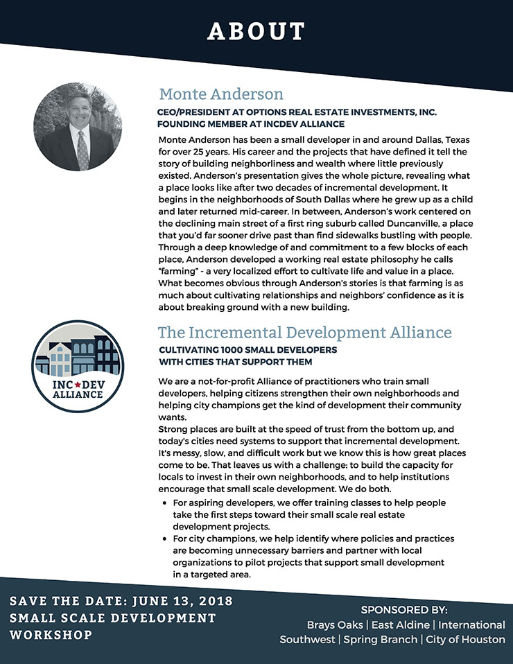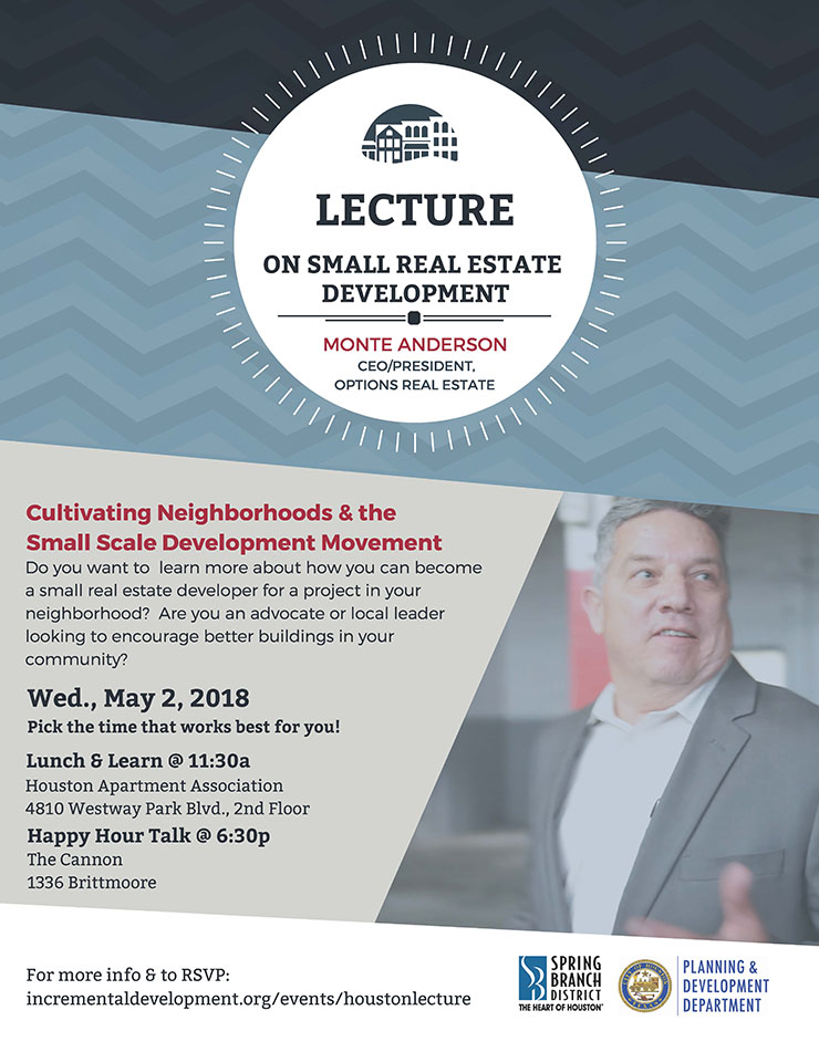 Join us for a lecture by Monte Anderson, CEO/President at Options Real Estate Investments, Inc. and Founding Member At IncDev Alliance.