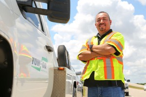 Because the likelihood of a secondary crash increases by nearly 3% each minute a breakdown or other hazardous vehicle incident remains on the freeway, safety is at the center of the Tow and Go program. A motorist whose vehicle breaks down on the freeway can call the number posted on TowAndGo.com or use the Houston TranStar app, once downloaded from the Apple Store or Google Play. Law enforcement officers authorize every Tow and Go clearance from their location in the Houston TranStar traffic center where freeway-monitoring cameras allow them to view incidents in real time. The program’s tow operators, identified by the official Tow and Go logo on their badge and truck, will move the motorist and their vehicle to a safe location within one mile of the breakdown and even replace a flat tire if the necessary equipment and a working spare is available.