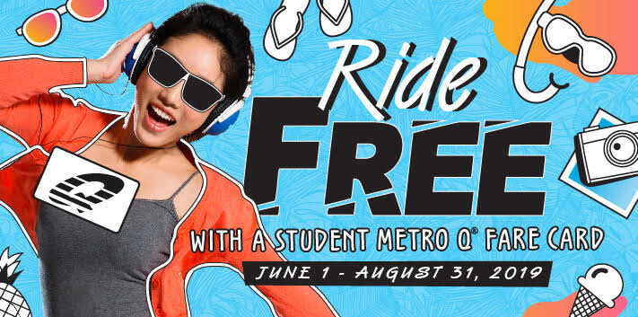 Students K-12, plus college and university students RIDE FREE from June 1 – Aug. 31, 2019, with a Student METRO Q® Fare Card