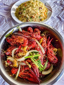 “We get our crawfish from Louisiana,” says our server, and although it was not the heart of crawfish season when we visited, he recommended that we try them. Soon we were presented with the necessary plastic crawfish gloves, a bowl for crawfish shells, and a steaming bowl of boiled crawfish coated with Captain T Special sauce and mixed with onions and cooked lemons. For those who have only tried Cajun style, Viet-Cajun is a must. The freshly made sauces add an extra burst of flavor that compliment without overpowering the taste of the crawfish.