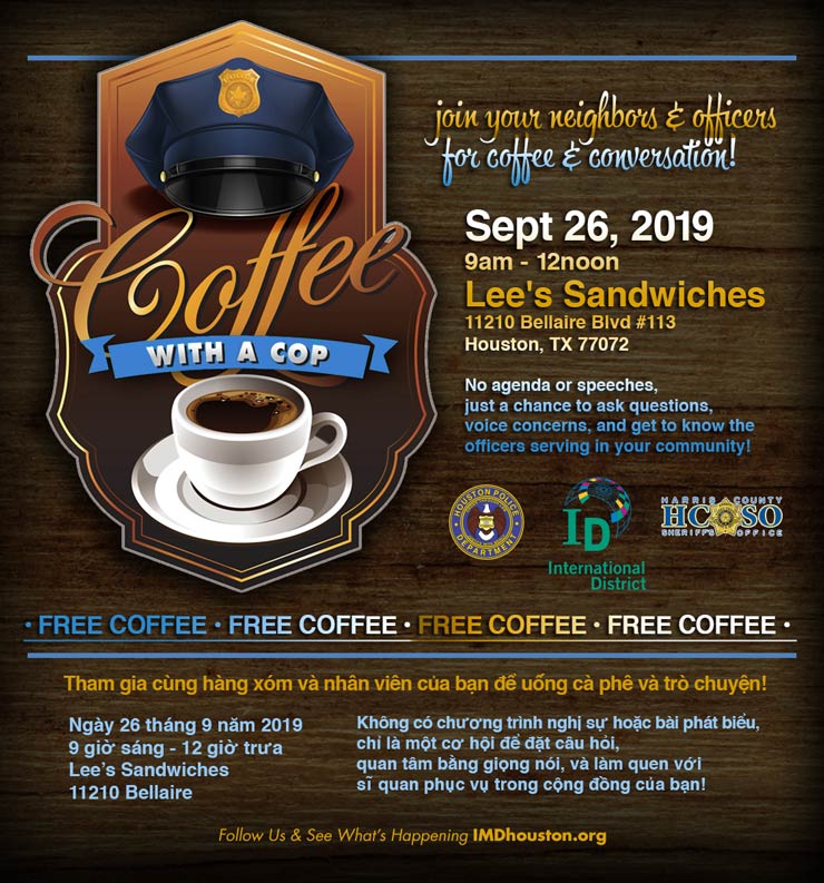 Join your neighbors and officers for free coffee and conversations!