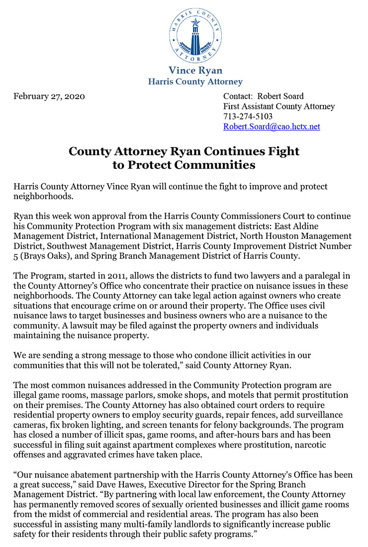 County Attorney Ryan and former Managing Attorney Celena Vinson discussing community protection in September 2019