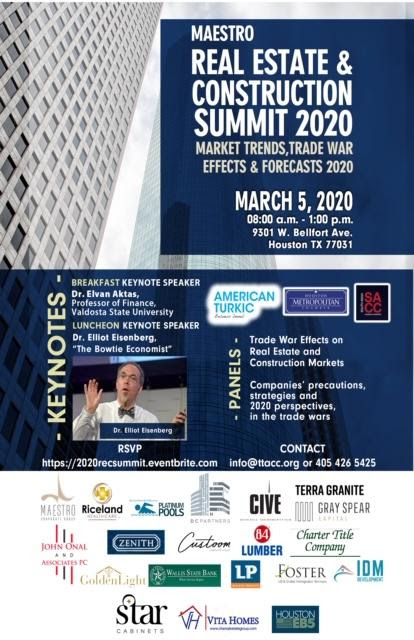 It is with great pleasure that we invite you to our annual 2020 Real Estate and Construction Summit, co-organized by the American Turkic Business Council, the Houston Metropolitan Chamber of Commerce and the South Asian Chamber of Commerce.