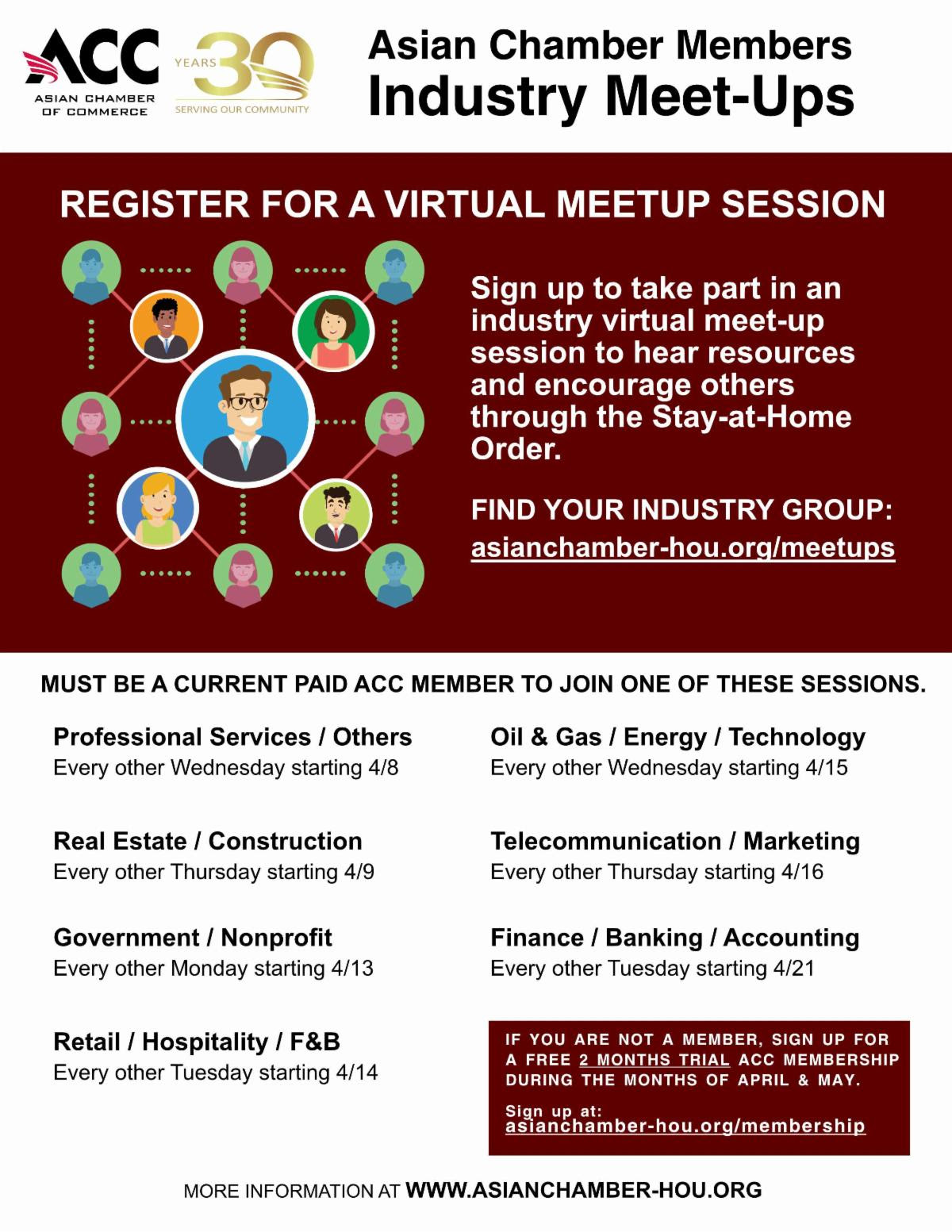 Sign up for your industry virtual meet-up session to hear resources and encourage others through the Stay-at-Home Order.