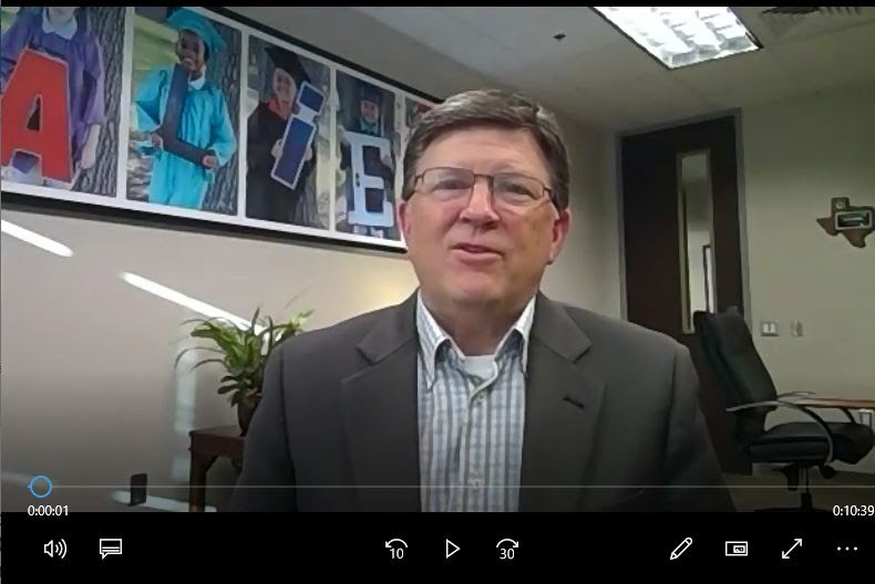 En este video, el Superintendente de Alief ISD, HD Chambers habla con los padres, los estudiantes y el personal. Haga clic en la imagen de arriba para ver el video, o mire aqui.