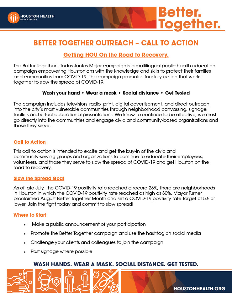 The coronavirus is spiking again in many parts of the nation. Please use this information from the Houston Health Department.