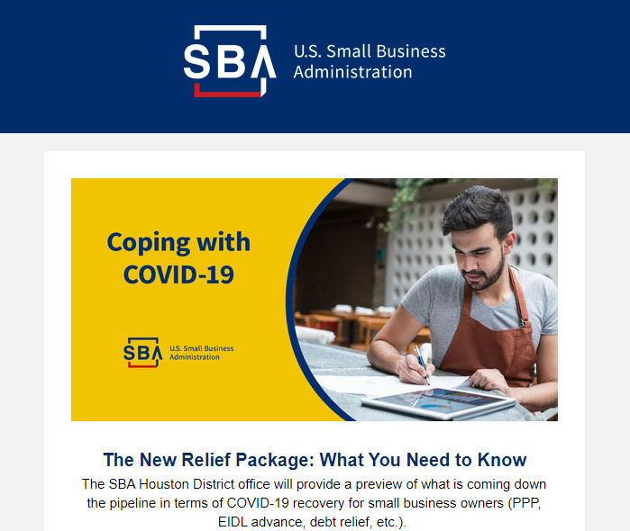 Sessions include an overview of the new stimulus package as well as Q&A sessions with SBA Leadership.