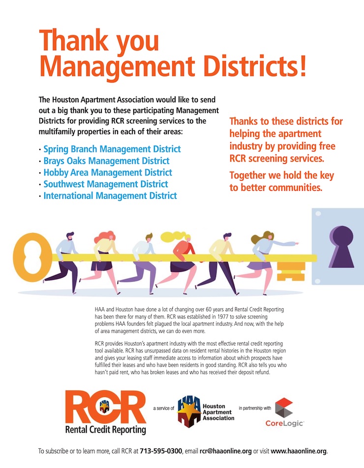 Working with the Houston Apartment Association, we proudly fund apartment complex managers’ use of a system to screen potential renters. This helps create safer and more stable places to live for thousands of families.