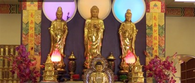 Many of the local founders of the Buddhist temple came from Vietnam. But many people would associate its images with Chinese decor.