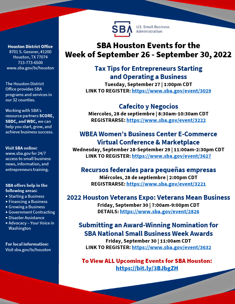 Questions? Please contact houston@sba.gov |