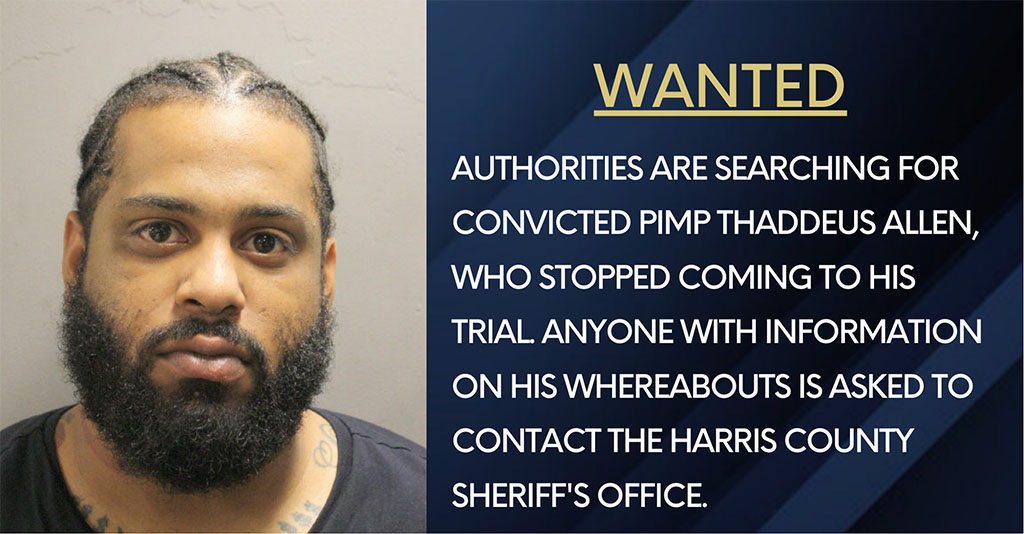 Now he may have resumed his work as a “pimp” in the southwest part of the Houston area, and anyone who sees him should call 9-1-1 and report him, according to authorities.