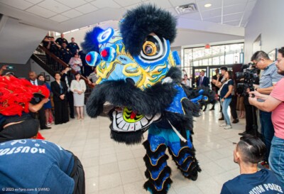 With Mayor Sylvester Turner and other government officials also taking part, ceremonial paint was applied to the team’s lion heads — they’d just arrived from China — as a sacred and symbolic act, said Lt. Jonathan Lui, the HPD Westside Differential Response Team leader and dance team organizer.
