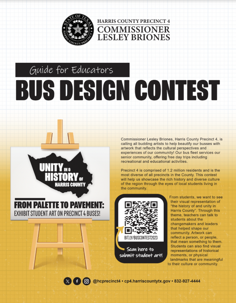 Commissioner Lesley Briones is hosting a bus design event! Students are able to show and help out our community by beautifying our buses with artwork that reflects cultural experiences and experiences. If you are interested, apply here.