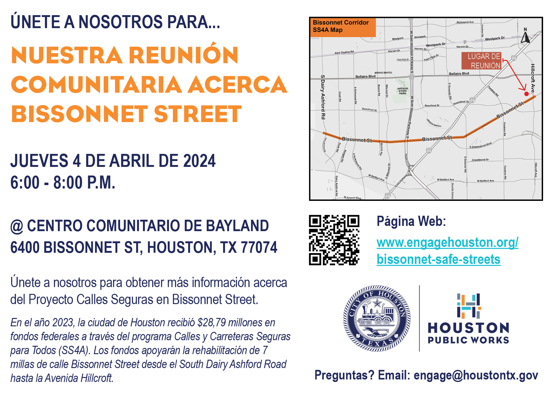 Join us to learn more about the Bissonnet Street Safe Streets Project.