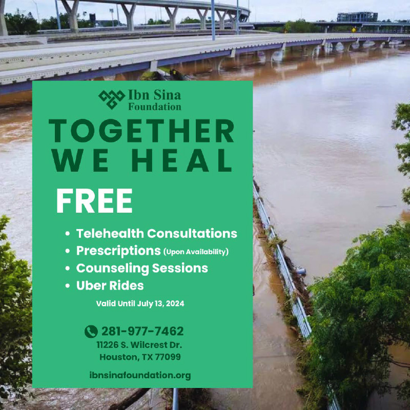 The Ibn Sina Foundation is offering free telehealth consultations, prescriptions (upon availability), counseling sessions, and Uber rides. For more information, please call 281-977-7462 or visit Ibn Sina Foundation. The address is11226 S. Wilcrest Dr, Houston, TX 77099.
