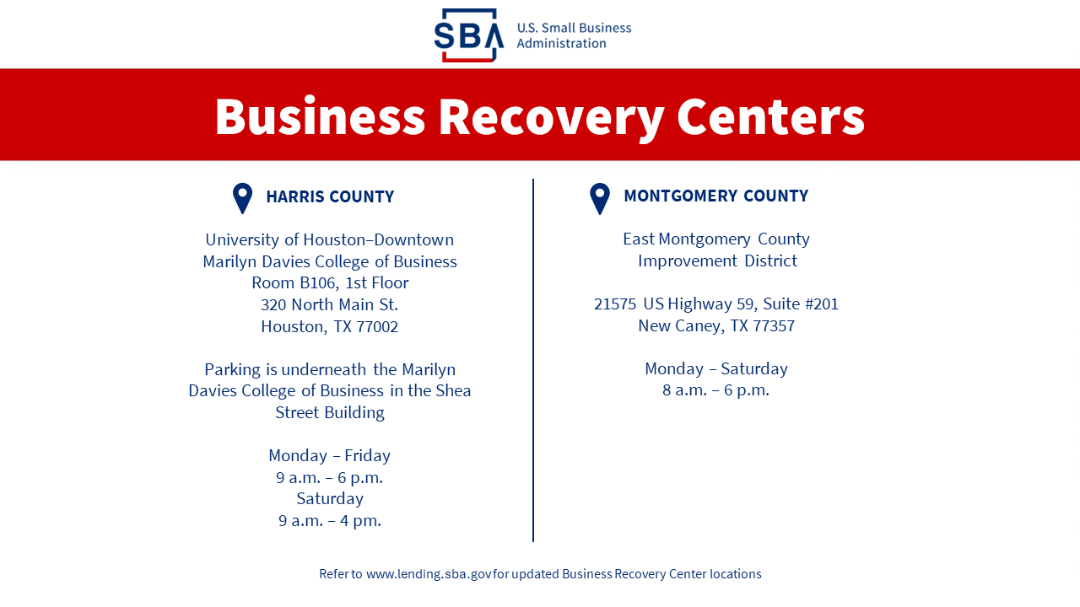 As more Business Recovery Centers become available, they will be added to the original disaster declaration, which can be found here: https://lending.sba.gov/search-disaster/?disaster=TX-20016