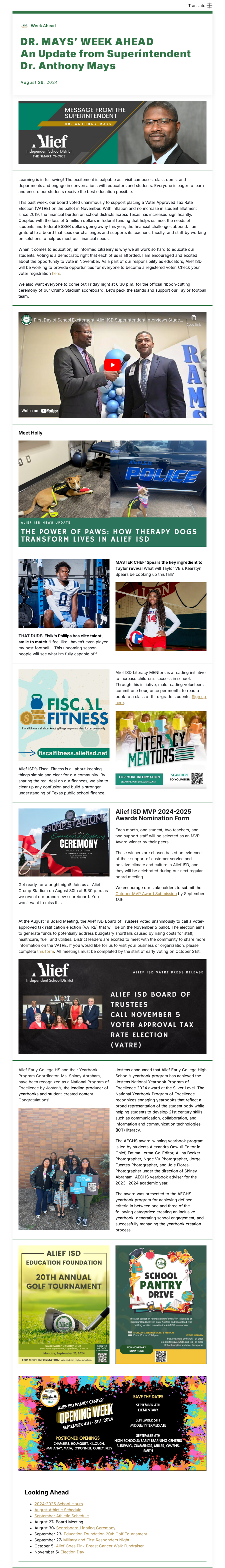 5. Superintendent Dr. Anthony Mays’ Week Ahead – August 26, 2024