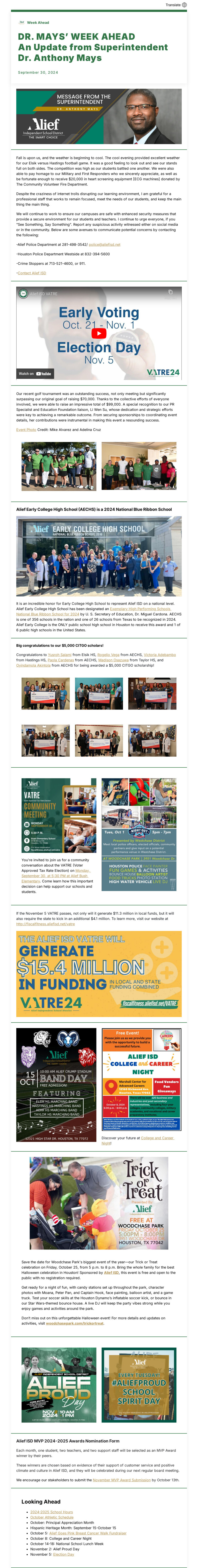 5. Superintendent Dr. Anthony Mays’ Week Ahead – September 30, 2024