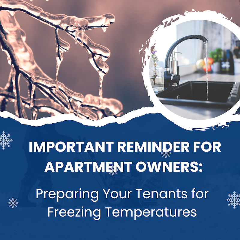 As winter weather approaches, it’s crucial to ensure your tenants are well-prepared for freezing temperatures. When temperatures drop, water pipes in apartments are at risk of freezing and potentially bursting, which can lead to costly damage. By sharing these preventative measures with your tenants, you can help them take the right steps to protect their homes and prevent significant damage to the property.