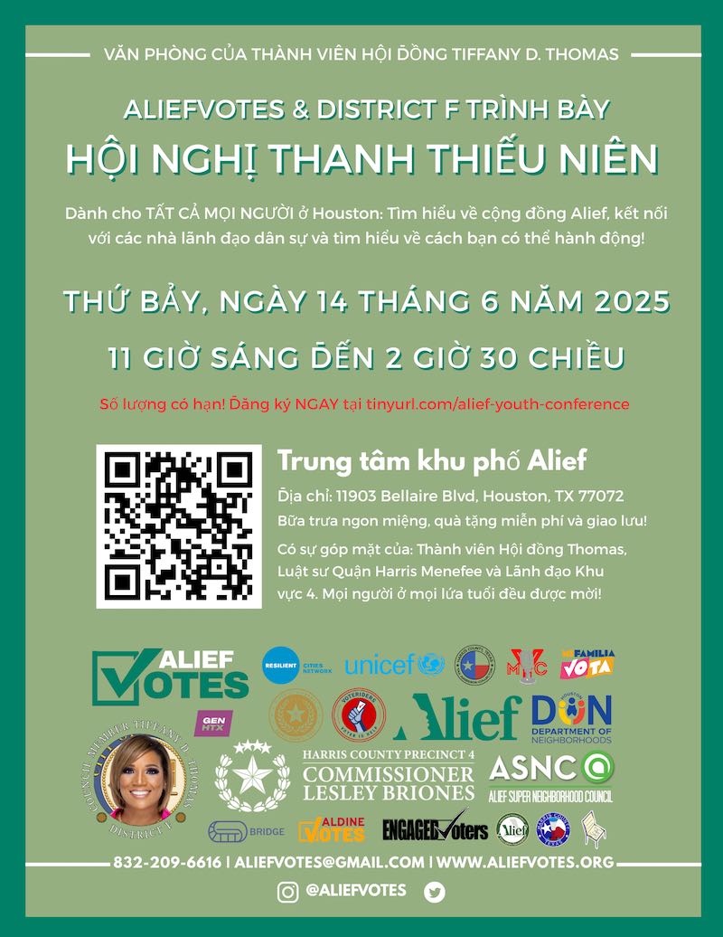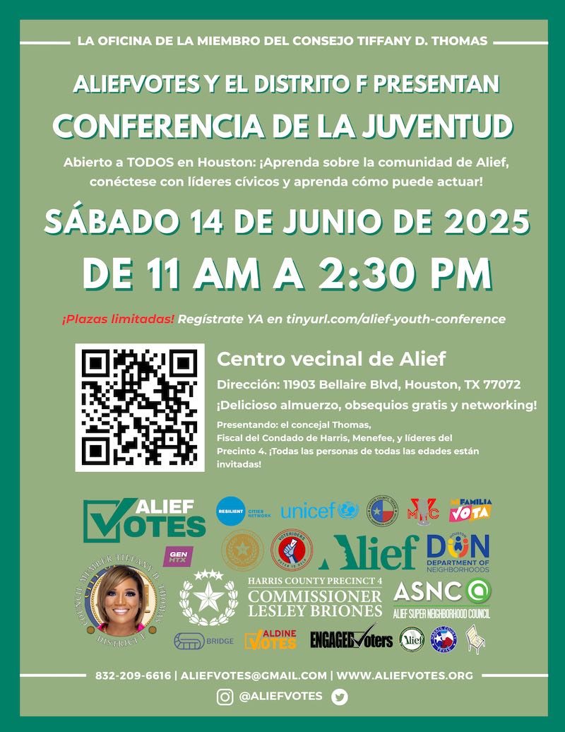 Open to EVERYONE in Houston: Learn about the Alief community, connect with civic leaders, and learn about how you can take action!