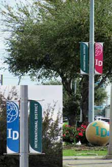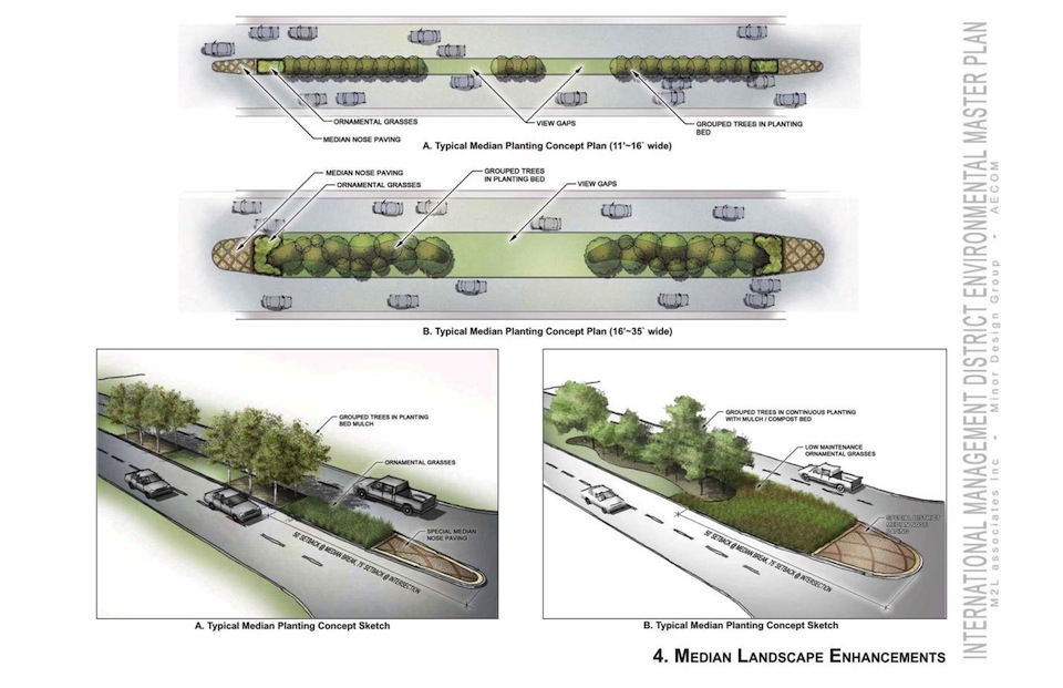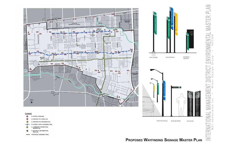 The goal of the environmental design master plan is to enhance the visual appeal of the international theme of the District to attract and retain investors and residents, increase property values, and facilitate business development. The master plan will identify opportunities to increase the appeal of the District and create a more attractive place to live, work, shop, and invest.