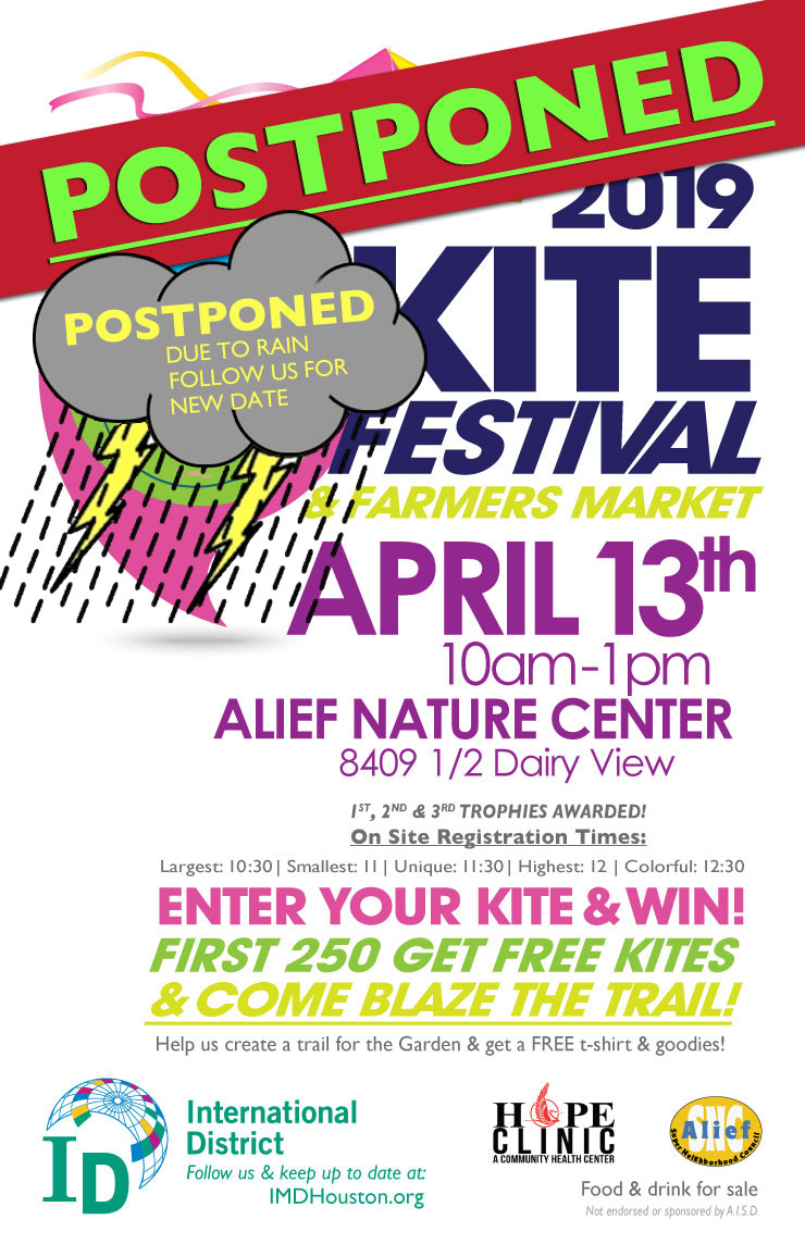 Join us! The rescheduled 2019 Kite Festival & Farmers Market will take place on May 19, 2019.
