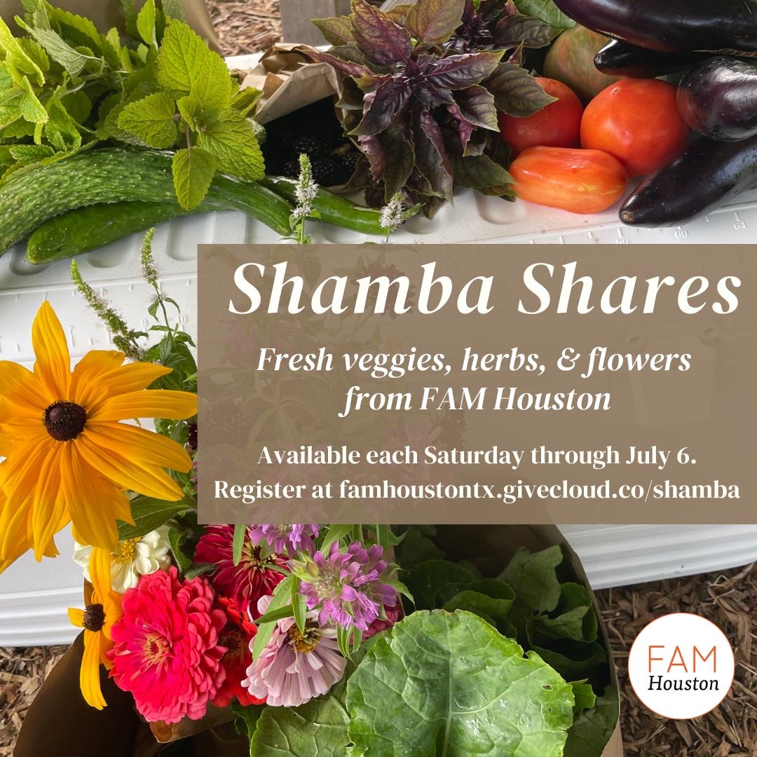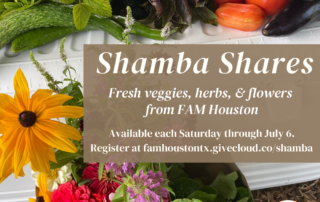 Order a Shamba Share today! If you love fresh veggies and flowers, and would love to support FAM Houston, Shamba Shares are for you! No commitment Farm Shares are ready for sign ups! For $40/week, your share includes 4-5 vegetables, 1-2 herbs, and 1 fresh-cut flower bouquet. Each week's share is purchased individually. Sign up for one [...]