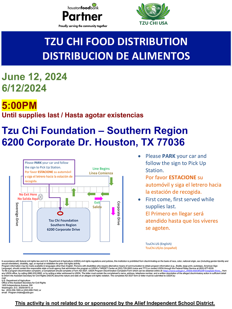 Please PARK your car and follow the sign to Pick Up Station. First come, first served while supplies last.
