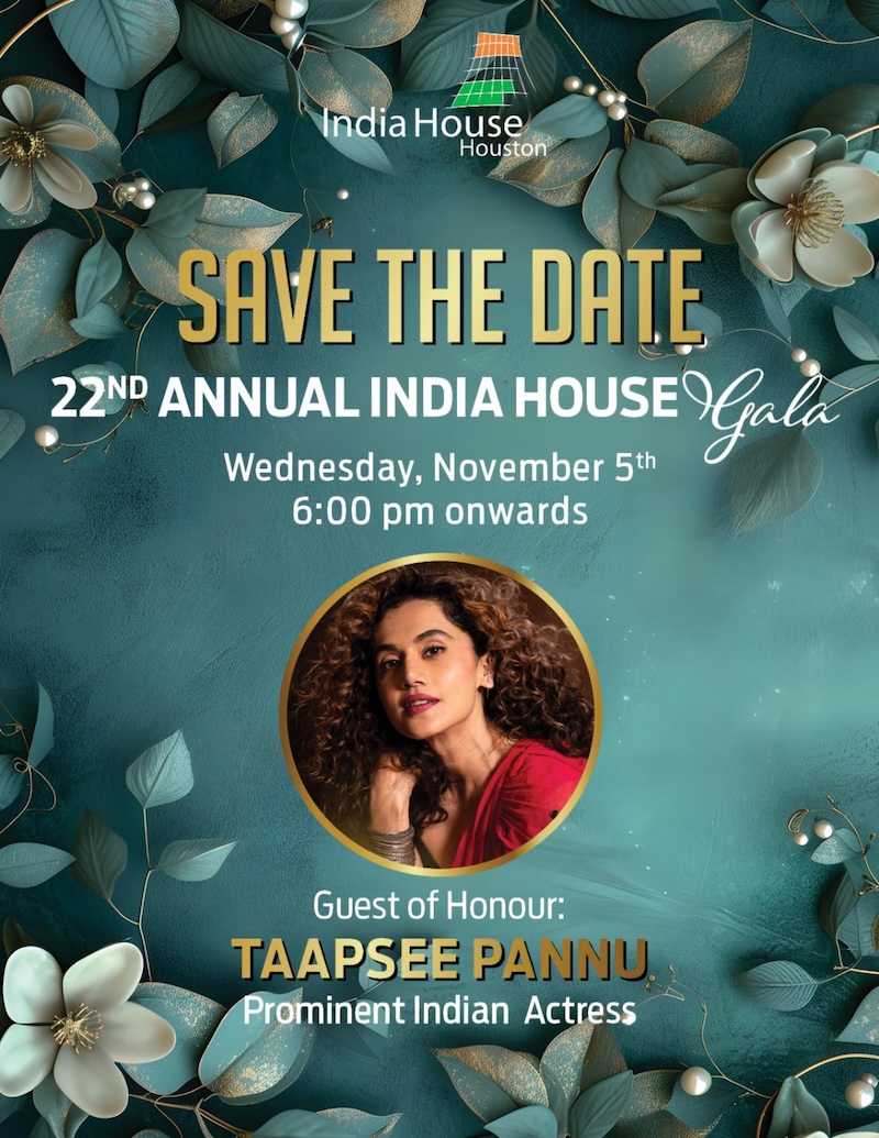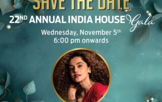 Save the Date: 22nd Annual India House Gala, Nov. 5 with guest of honor Taapsee Pannu, a prominent Indian actress