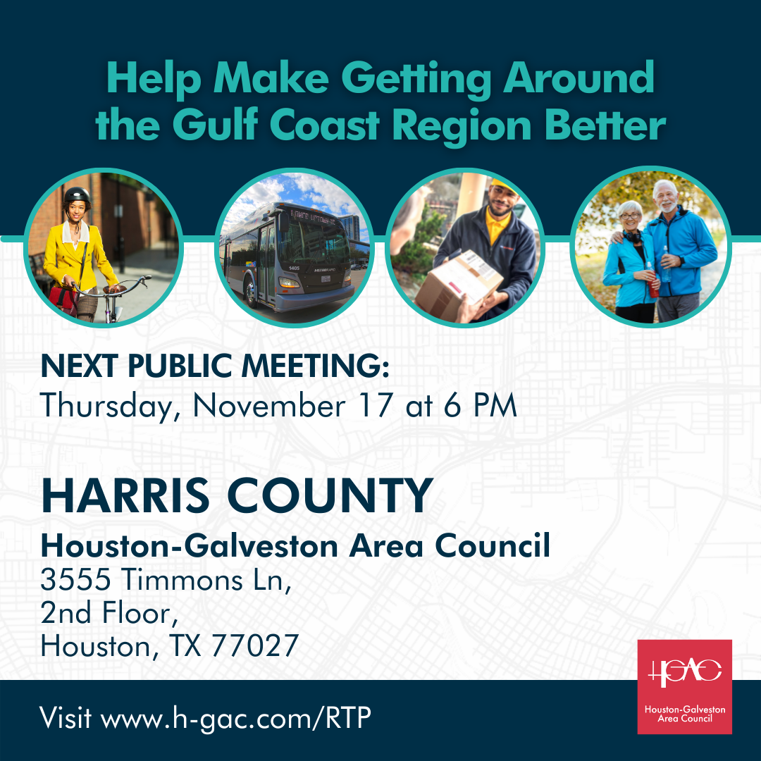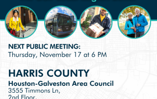On Thursday, November 17, the Houston-Galveston Area Council staff will be giving residents an additional opportunity to provide feedback on how we can move around the region better.