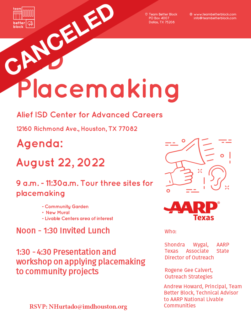 This event has been canceled and will be rescheduled. Presentation and workshop on applying placemaking to community projects