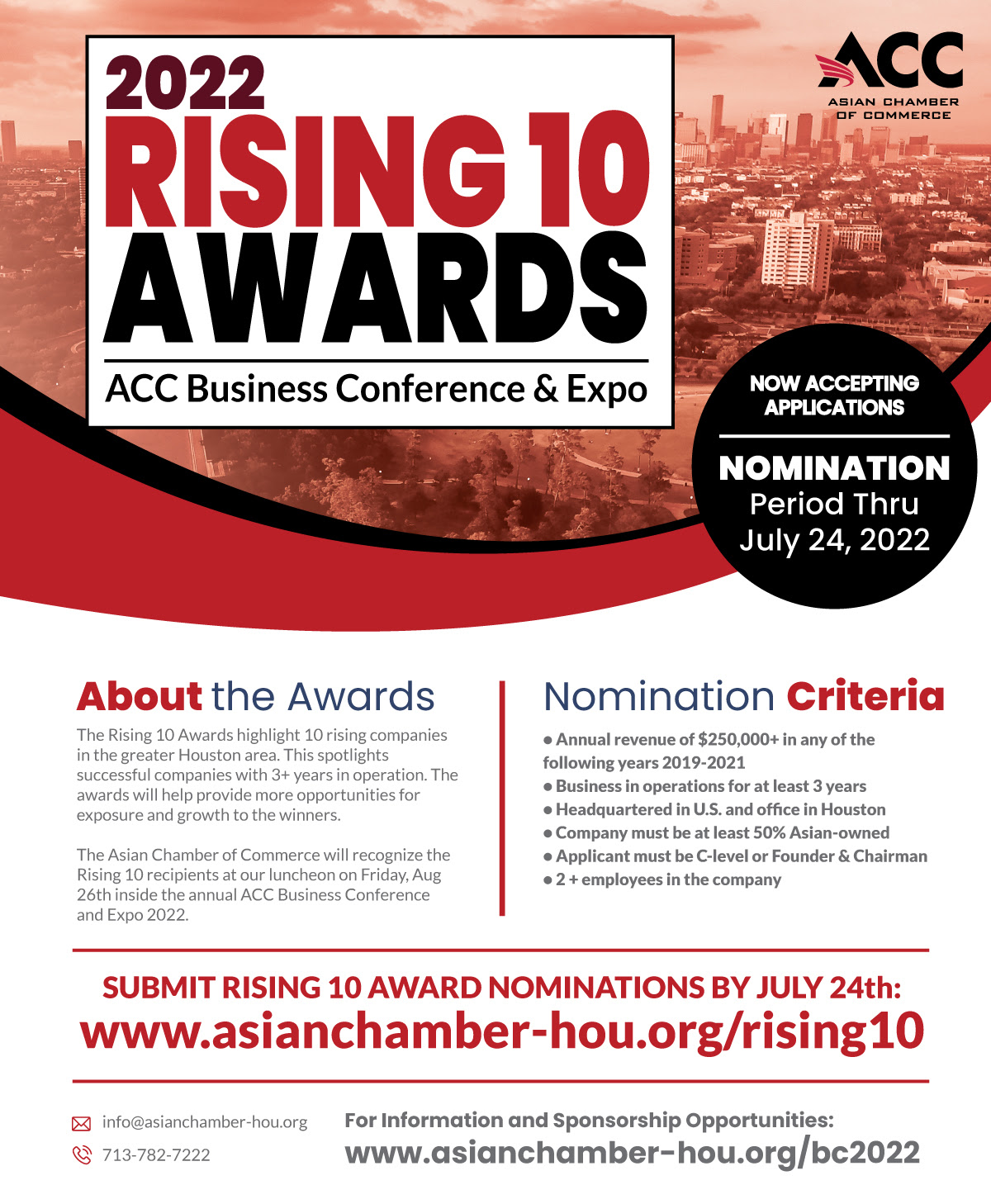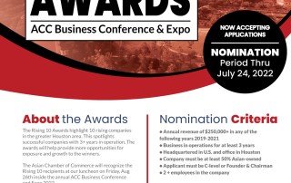 E-Newsletter | July 20, 2022 Chamber Events and Announcements APPLICATIONS NOW OPEN! CALLING FOR NOMINATIONS Deadline July 24, 2022 Help spotlight a rising RISING company at our Annual RISING 10 Awards Click to Nominate BUSINESS RESOURCES AND PARTNER EVENTS APPLICATIONS OPEN NOW UNTIL The COVID-19 pandemic hit Asian American and Pacific Islander American (AAPI) business owners [...]
