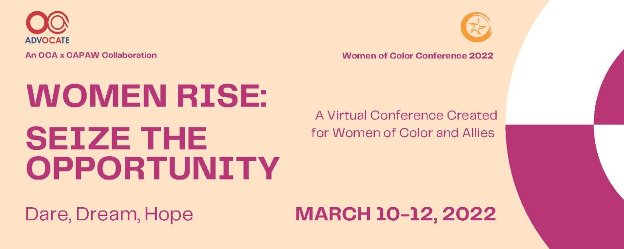 The Center for Asian Pacific American Women (apawomen.org) and OCA - Asian Pacific American Advocates are co-hosting the 2022 Women of Color Conference March 10-12, 2022. The purpose for the conference is to empower the attendees through learning, connecting, and sharing with one another. The pandemic has impacted all of our lives, especially women of [...]