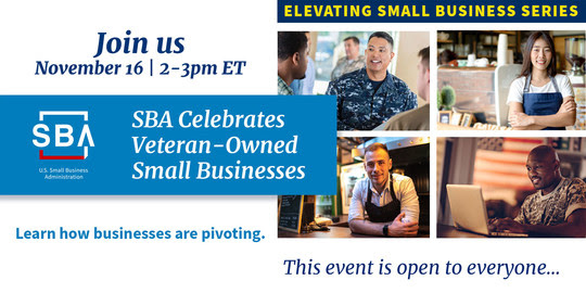 Join the SBA tomorrow, November 16, 2021 at 2:00 p.m. ET for an online panel discussion with veteran and military spouse business owners as they share: Their small business success stories How they pivoted during the pandemic SBA resources they used to start and grow their businesses Register Now
