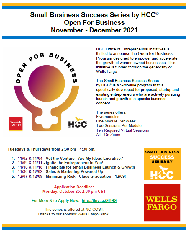 E-Newsletter | October 14, 2021 View as Webpage YOUR FINAL OPPORTUNITY TO APPLY FOR THE COMCAST RISE GRANTS! $10,000 GRANTS ARE AVAILABLE IN HOUSTON Applications will close END OF TODAY (October 14) IF A BUSINESS IS NOT ELIGIBLE FOR THE COMCAST RISE INVESTMENT FUND, APPLICATIONS ARE OPEN FOR MARKETING AND TECHNOLOGY SERVICES. The Comcast RISE Investment [...]