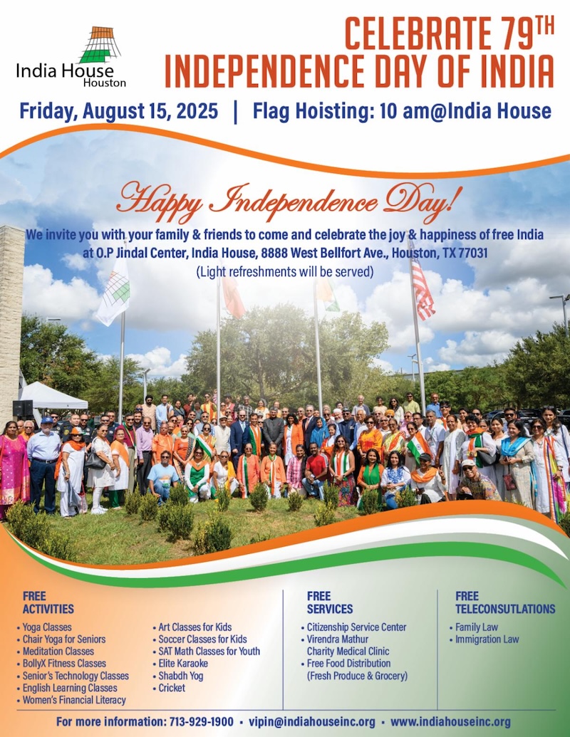 India House: Celebrate the 79th Independence Day of India, Aug. 15