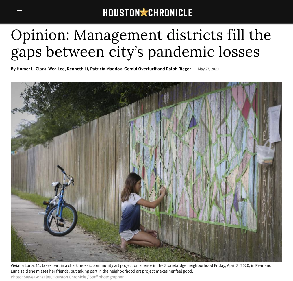 By Homer L. Clark, Wea Lee, Kenneth Li, Patricia Maddox, Gerald Overturff and Ralph Rieger, Houston Chronicle The Houston area’s little known and sometimes misunderstand management districts have been working to enhance public safety, business opportunities and other forms of quality of life issues for years. Now that the pandemic is forcing deep budget cuts [...]